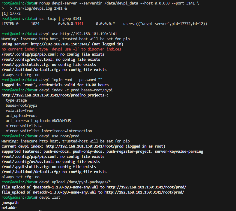 nohup devpi-server --serverdir /data/devpi_data --host 0.0.0.0 --port 3141 \