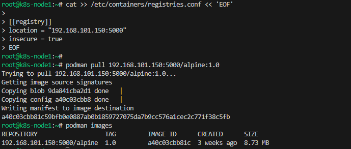 podman pull 192.168.101.150:5000/alpine:1.0
