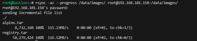 rsync -az --progress /data/images/ root@192.168.101.150:/data/images/